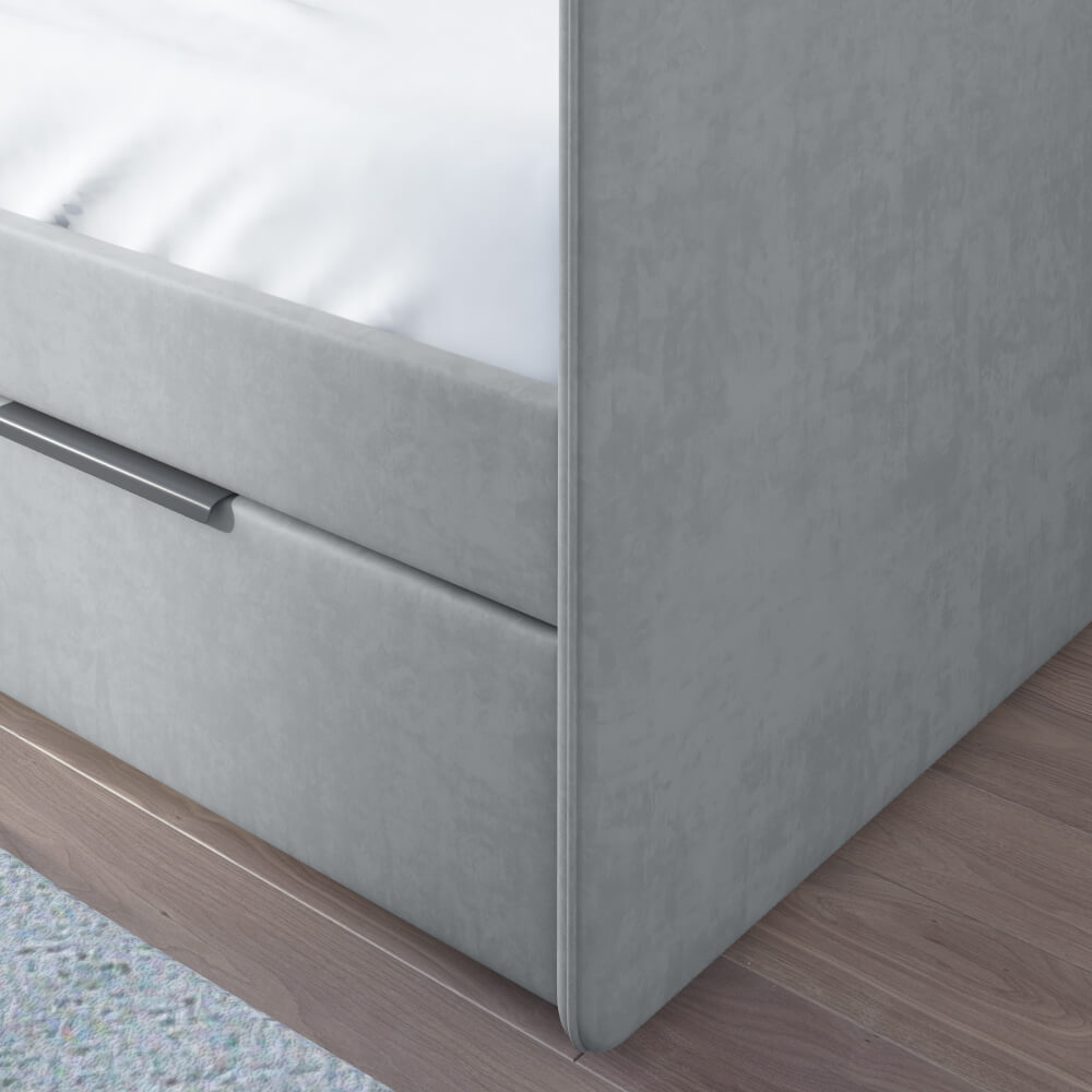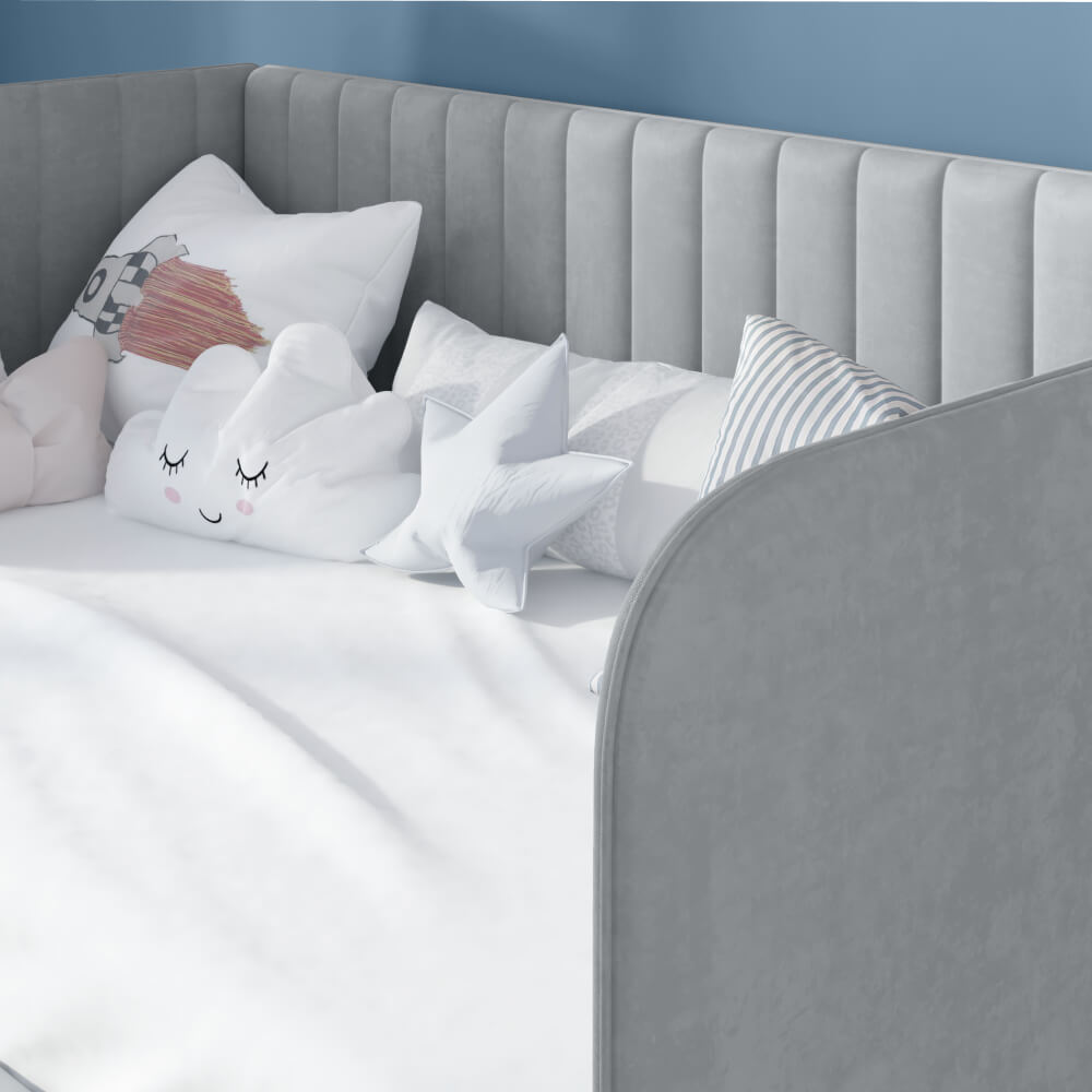 Детская кровать ELLA 2 с вертикальной строчкой и выдвижным ящиком сочетает в себе функциональность, стиль, удобство и комфорт, делая ее отличным выбором для детской комнаты.